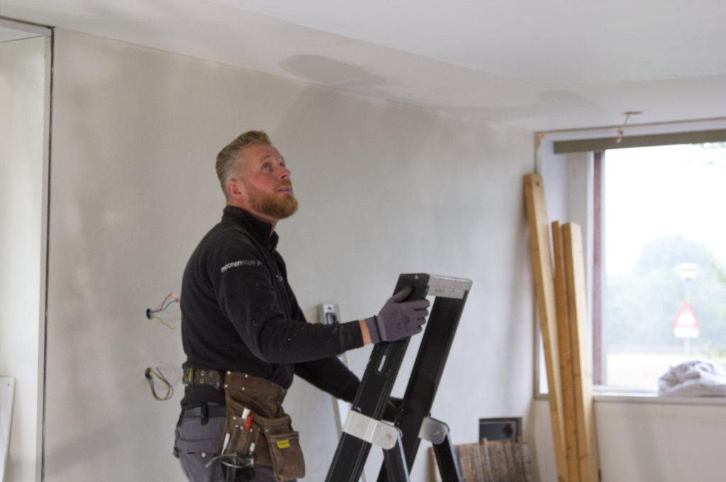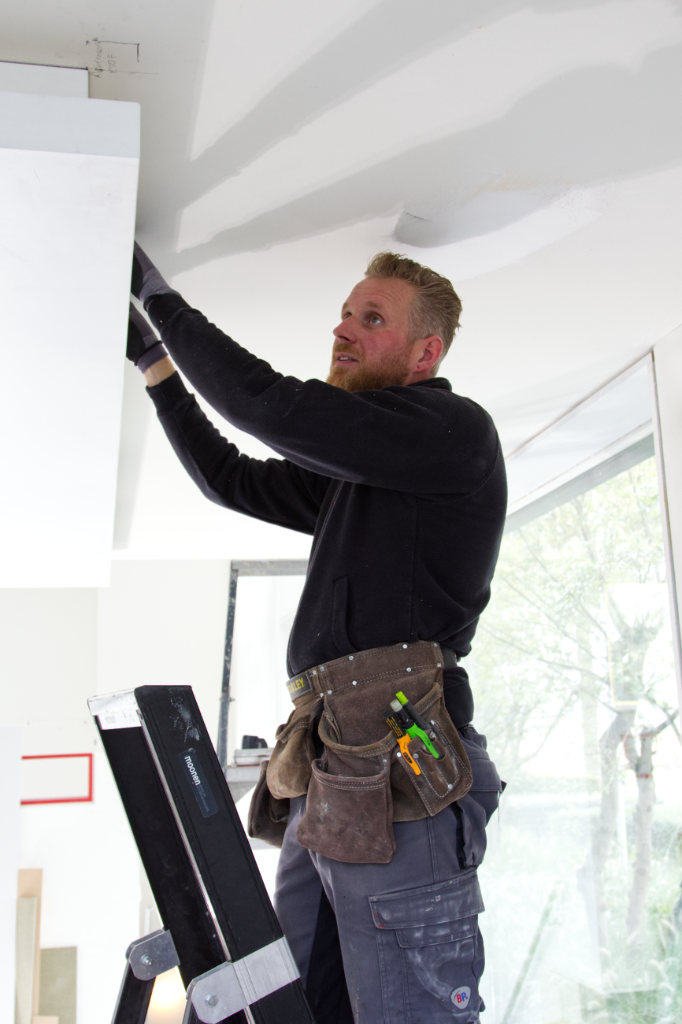 “Ron regelde een afspraak met Rob Moonen en we hadden een goed gesprek”, verteld Dave. “Er was meteen een klik en van het één kwam het ander en nu werk ik al meer dan een half jaar bij Moonen Bouw als timmerman. Ik zie mezelf meer als een all-rounder en hoop ook men mij ook meer als zodanig gaat zien en inzetten, want ik heb het hier echt naar mijn zin. Alles is goed geregeld en er wordt gewerkt met goede planningen en werkvoorbereiding. Een verademing is het feit dat de planners precies weten hoeveel werk iets is. Dat was bij andere werkgevers wel anders. We hebben wekelijks projectoverleg met der projectmanager en ik ben blij dat ik nog fouten mag maken zonder er meteen met de vuisten op tafel wordt geslagen. Ik moet nog veel leren, maar ik ben een type ‘gewoon doen’.”