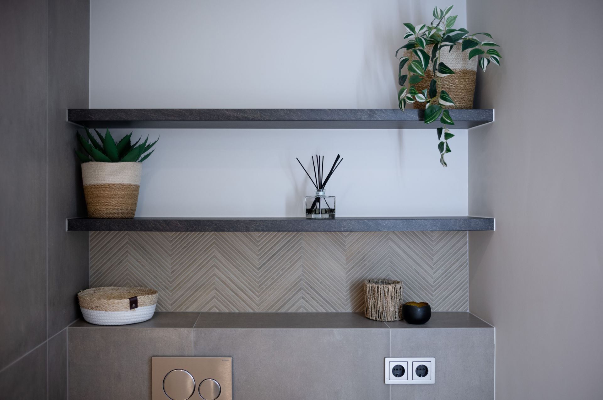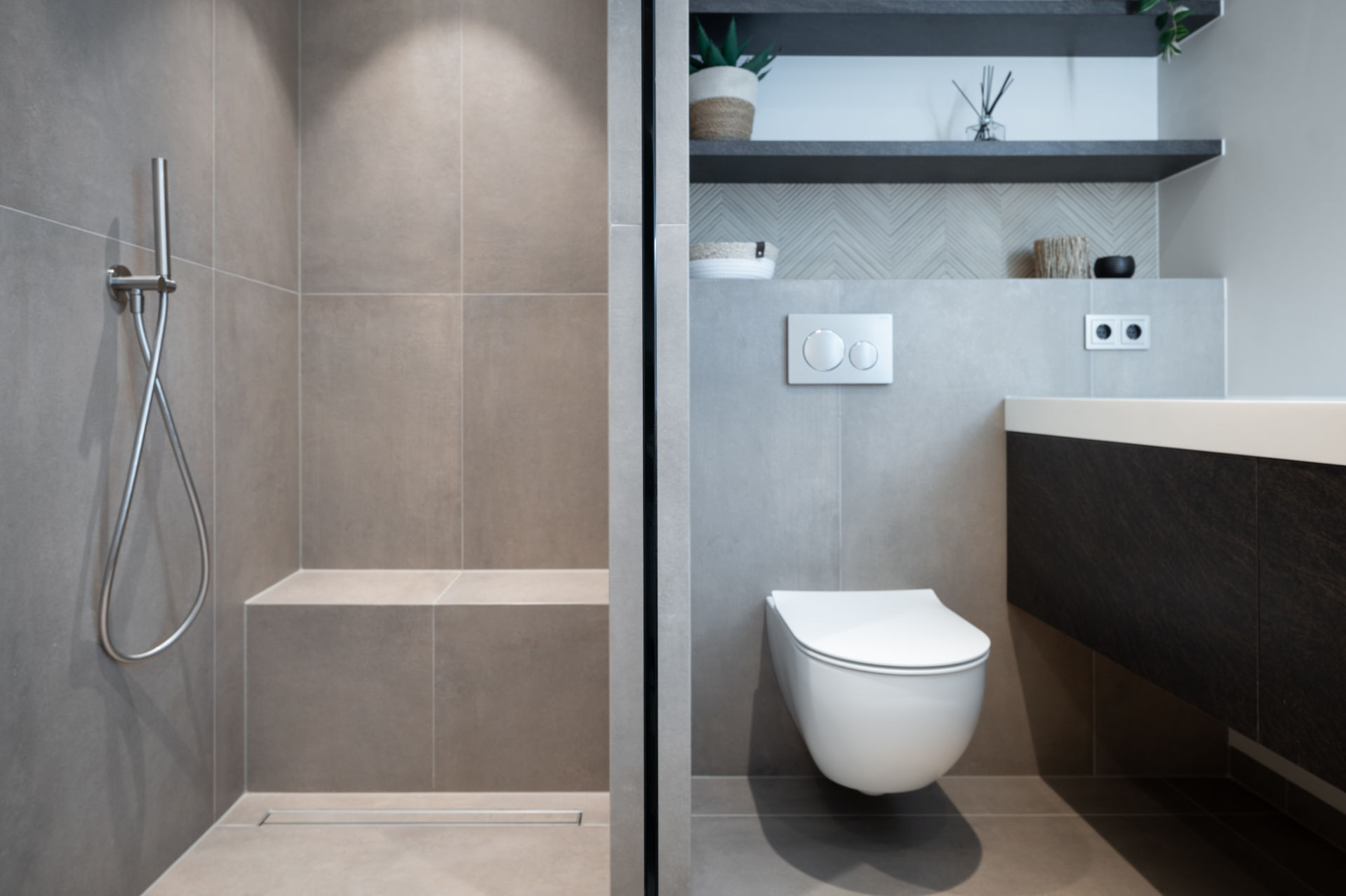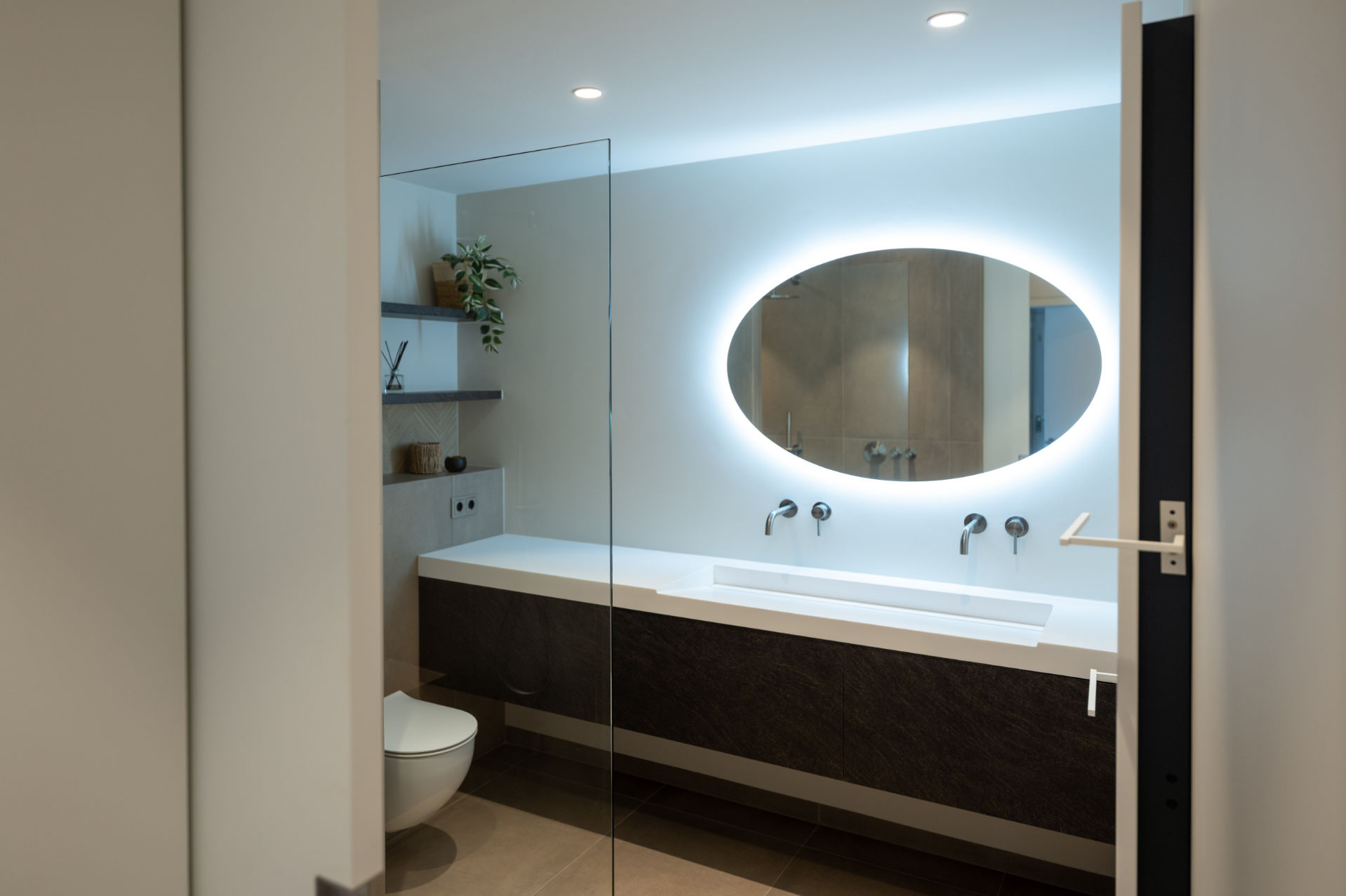 Bij deze levensloopbestendige woning in Klimmen hebben wij de badkamer en het toilet volledig gemoderniseerd. Daarnaast is de indeling van de badkamer aanzienlijk functioneler gemaakt, onder andere door het toepassen van een weggewerkte schuifdeur, een inloopdouche, een vrij hangend toilet en een stijlvol meubel.