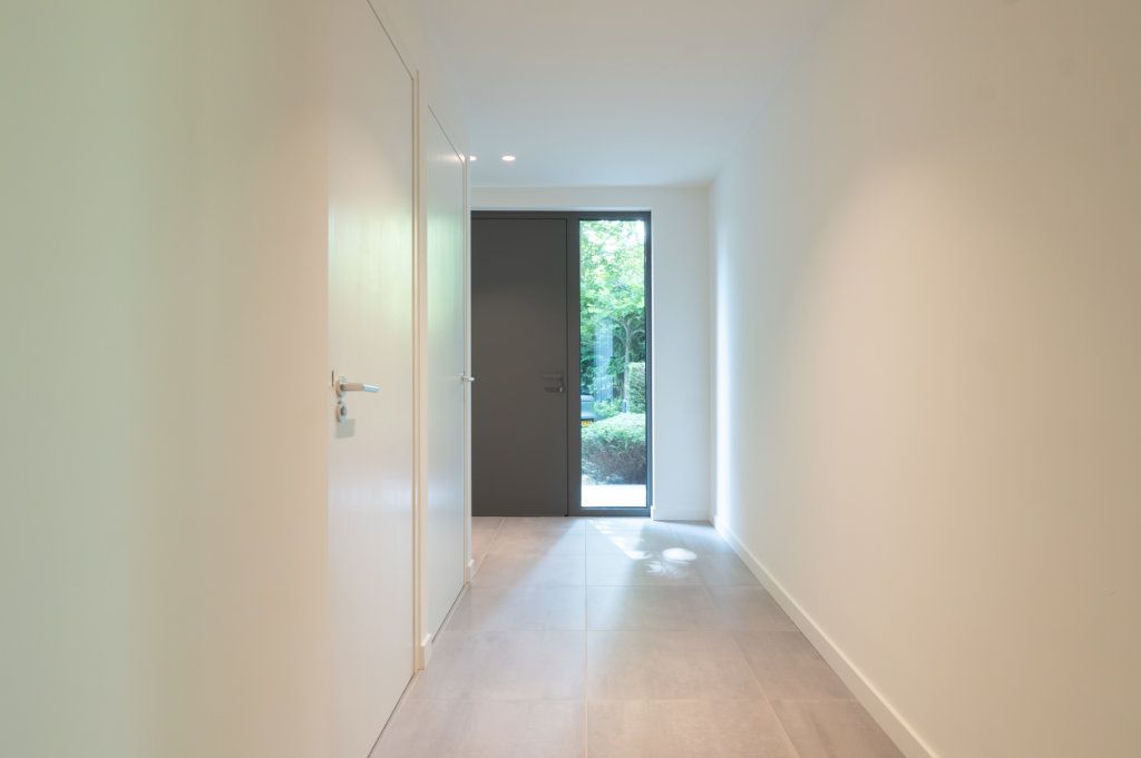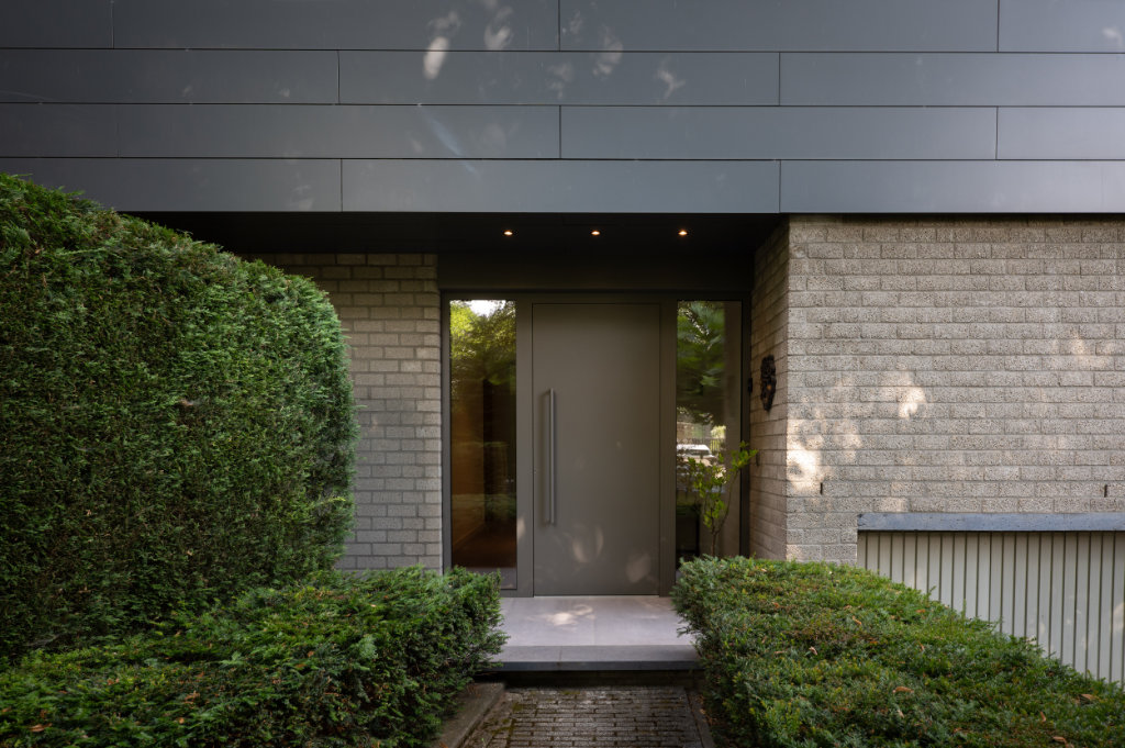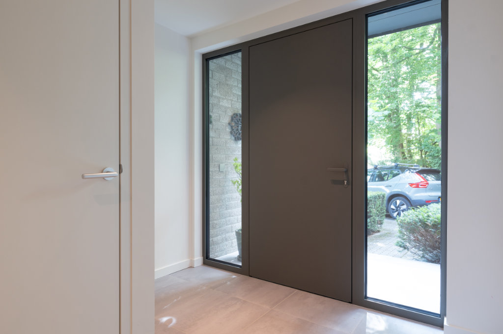 De nieuwe voordeur – uitgevoerd in een afwijkende grijstint die perfect aansluit bij de gevelstenen – zorgt voor meer daglicht in de entree. Zowel de puien als de voordeur zijn geleverd en geplaatst door ITH Kozijn & Geveltechniek uit Heerlen.